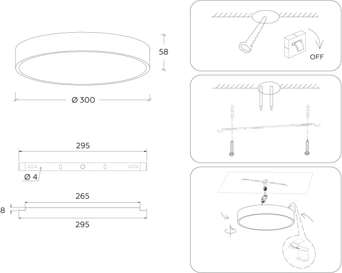 Круглый плафон создает равномерное мягкое освещение. Он имеет цветовую температуру 3000 К, что прекрасно подойдет для. Высота светильника составляет 6 см, а диаметр — 30 см, что делает его отличным решением для помещений любых параметров.