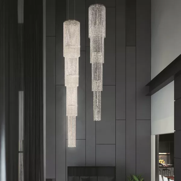 Хрустальный плафон элегантной формы рассеивает свет, создавая мягкое и уютное освещение. Высота люстры составляет 220 см, что позволяет адаптировать её под различные потолки. Диаметр люстры составляет 30 см, что делает её идеальной для установки в кафе, холл, гостиную и офис.