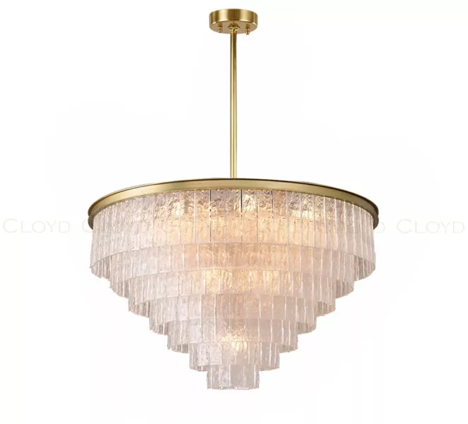 Высота люстры составляет 73 см, что позволяет адаптировать её под различные потолки. Диаметр люстры составляет 85 см, что делает её идеальной для установки в холл и гостиную.