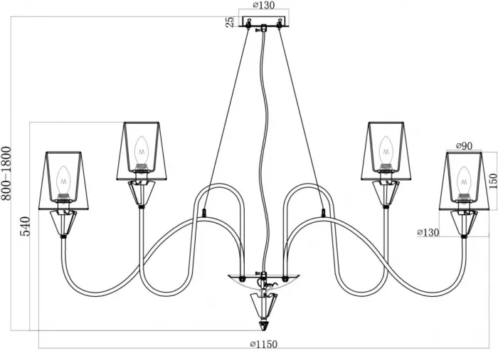 Подвесная люстра florero mod078pl-12ch оснащена 12 лампами накаливания с цоколем e14 с общей мощностью 480 Вт. Плафоны белого цвета в форме конуса дополнительно способствуют организации теплого освещения, привносящего уют в ваш дом или помещение куда вы приобретаете подвесную люстру. Конструкция данной модели подвесной люстры высотой 54 см, диаметром 115 см и длинной подвеса 150 см лаконично дополнит большие по площади жилые и коммерческие помещения с разной высотой потолков и оставит достаточное количество пространства в них для комфортного передвижения. Вес люстры составляет всего 9 кг.