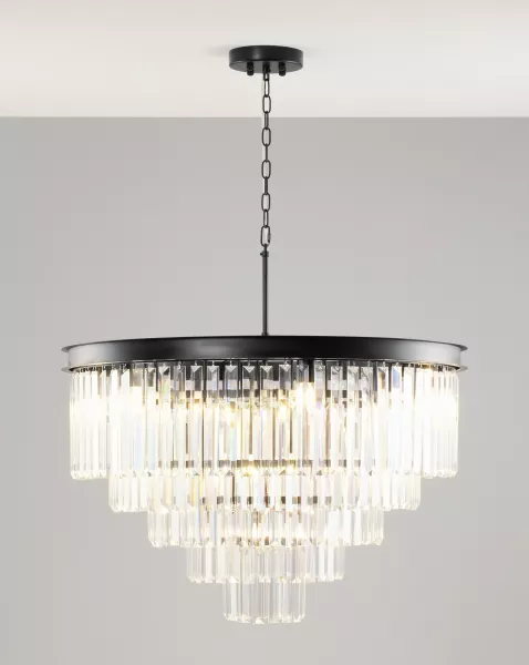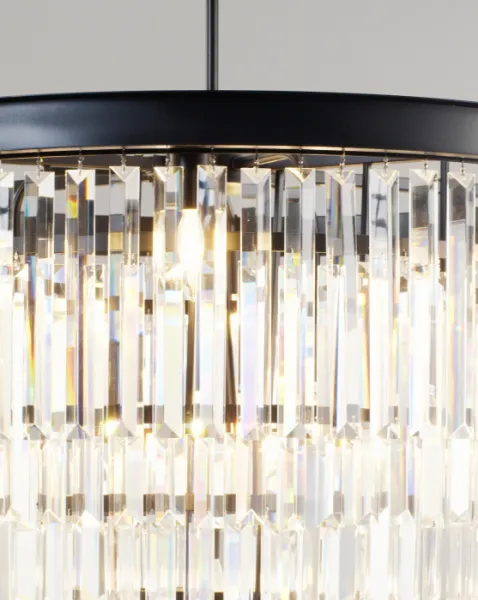 Хрустальный плафон изящной формы рассеивает свет, создавая мягкое и уютное освещение.