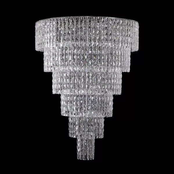 Хрустальный плафон декоративной формы рассеивает свет, создавая мягкое и приятное освещение. Высота люстры составляет 160 см, что позволяет адаптировать её под различные потолки. Диаметр люстры составляет 120 см, что делает её идеальной для установки в кафе, холл и гостиную.