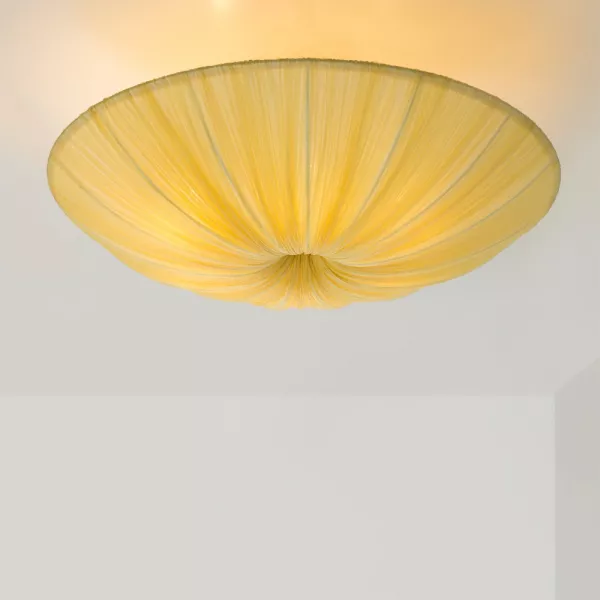 Плафон за счет своей формы создает равномерное мягкое освещение. Высота светильника составляет всего 18 см, а диаметр — 60 см, что делает его компактным и подходящим для помещений с различными потолками.