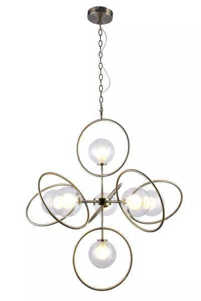 Подвесная люстра rigalio 2047/03/07p оснащена 7 LED лампами с цоколем g9 с суммарной мощностью 21 Вт. Плафоны прозрачного цвета в форме шара дополнительно способствуют организации мягкого света, привносящего уют в ваш дом или помещение куда вы приобретаете подвесную люстру. Конструкция данной модели подвесной люстры высотой 70 см, диаметром 60 см и длинной подвеса 30 см утонченно дополнит большие по объему жилые и коммерческие помещения с разной высотой потолков и оставит достаточное количество пространства в них для комфортного передвижения. Вес люстры составляет всего 3 кг, что положительным образом сказывается на простоте ее установки.