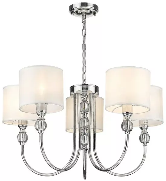 Подвесная люстра 295-103-05 оснащена 5 лампами накаливания с цоколем e14 с суммарной мощностью 200 Вт. Плафоны белого цвета в форме цилиндра дополнительно способствуют организации теплого освещения, привносящего уют в ваш дом или помещение куда вы приобретаете подвесную люстру. Конструкция данной модели подвесной люстры высотой 38 см, диаметром 68 см лаконично дополнит большие по объему жилые и коммерческие помещения с разной высотой потолков и оставит достаточное количество места в них для комфортного передвижения.