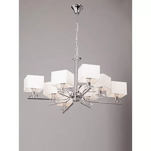 Подвесная люстра v3902/8 оснащена 8 лампами накаливания с цоколем e14 с суммарной мощностью 320 Вт. Плафоны белого цвета в кубической форме дополнительно способствуют организации теплого освещения, привносящего уют в ваш дом или помещение куда вы приобретаете подвесную люстру. Конструкция данной модели подвесной люстры высотой 95 см, диаметром 87 см изысканно дополнит большие по площади жилые и коммерческие помещения с разной высотой потолков и оставит достаточное количество пространства в них для комфортного передвижения. Вес люстры составляет всего 5 кг, что положительным образом сказывается на простоте ее установки.