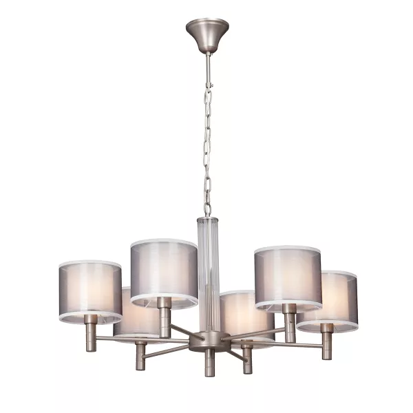 Подвесная люстра v3904/6 оснащена 6 лампами накаливания с цоколем e14 с суммарной мощностью 240 Вт. Плафоны серых и белых цветов в форме цилиндра дополнительно способствуют организации мягкого освещения, привносящего уют в ваш дом или помещение куда вы приобретаете подвесную люстру. Конструкция данной модели подвесной люстры высотой 85 см, диаметром 72 см изысканно дополнит большие по объему жилые и коммерческие помещения с разной высотой потолков и оставит достаточное количество места в них для комфортного передвижения. Вес люстры составляет всего 4 кг, что положительным образом сказывается на простоте ее установки.