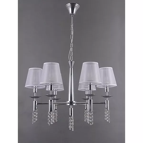 Подвесная люстра v3914/6 оснащена 6 лампами накаливания с цоколем e14 с суммарной мощностью 240 Вт. Плафоны белого цвета в форме конуса дополнительно способствуют организации теплого света, привносящего уют в ваш дом или помещение куда вы приобретаете подвесную люстру. Конструкция данной модели подвесной люстры высотой 92 см, диаметром 68 см лаконично дополнит большие по площади жилые и коммерческие помещения с разной высотой потолков и оставит достаточное количество места в них для комфортного передвижения. Вес люстры составляет всего 4 кг, что положительным образом сказывается на простоте ее установки.